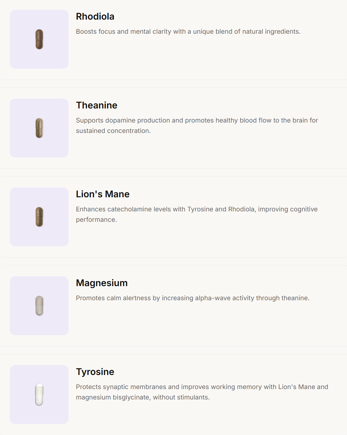 Stay clear, calm, and mentally sharp. This physician-formulated 30-day Focus Pack combines Rhodiola, L-Tyrosine, L-Theanine, Lion’s Mane, and Magnesium Bisglycinate to support balanced dopamine activity, smooth energy, and steady concentration. Each daily serving is pre-portioned for convenience—no stimulants, just focused clarity that lasts.